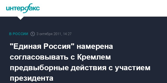 "Единая Россия" намерена согласовывать с Кремлем предвыборные действия с участием президента