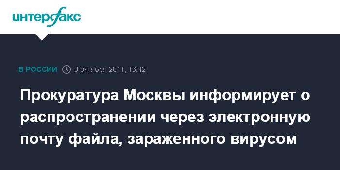 Прокуратура Москвы информирует о распространении через электронную почту файла, зараженного вирусом