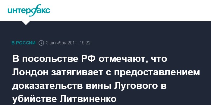 Данное заявление содержится в письме пресс-секретаря посольства России в Великобритании Константина Шлыкова главному редактору газеты "The Sunday times" по поводу опубликованной статьи от 2 октября под названием "Россия убила Литвиненко, заявляет главный прокурор". Данное письмо опубликовано на сайте посольства РФ в Лондоне.