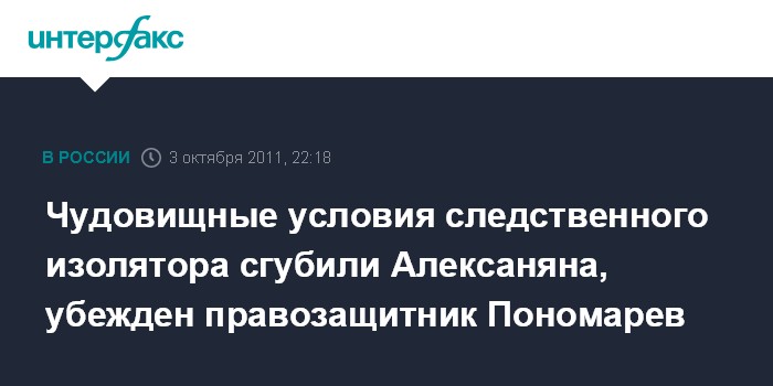 Чудовищные условия следственного изолятора сгубили Алексаняна, убежден правозащитник Пономарев
