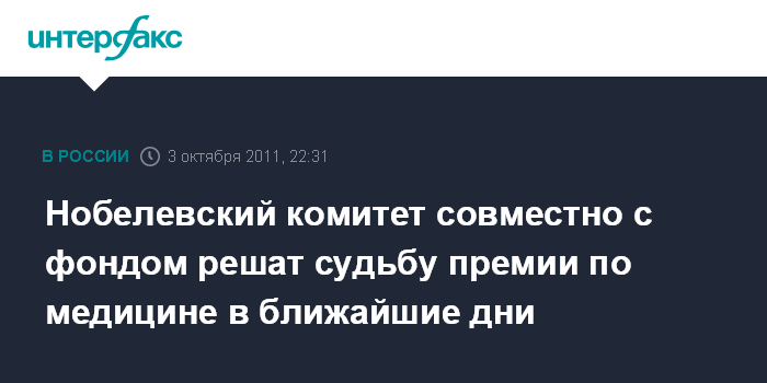 Нобелевский комитет совместно с фондом решат судьбу премии по медицине в ближайшие дни