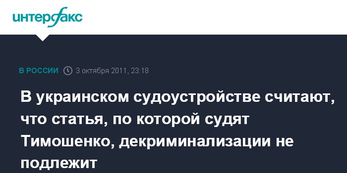 В украинском судоустройстве считают, что статья, по которой судят Тимошенко, декриминализации не подлежит
