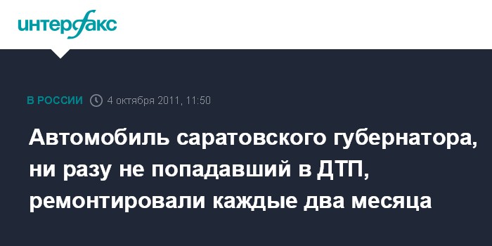 Автомобиль саратовского губернатора, ни разу не попадавший в ДТП, ремонтировали каждые два месяца