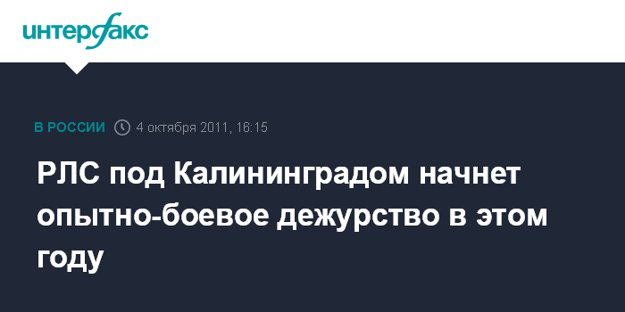 Москва. 4 октября. INTERFAX.RU - Радиолокационная станция предупреждения о ракетном нападении, расположенная под Калининградом, до конца года будет поставлена на опытно-боевое дежурство, сообщил во вторник журналистам командующий Космическими войсками генерал-лейтенант Олег Остапенко.