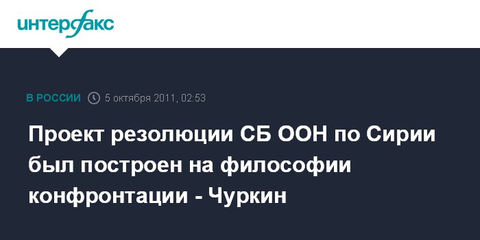 Проект резолюции СБ ООН по Сирии был построен на философии конфронтации - Чуркин