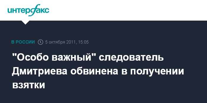 "Особо важный" следователь Дмитриева обвинена в получении взятки