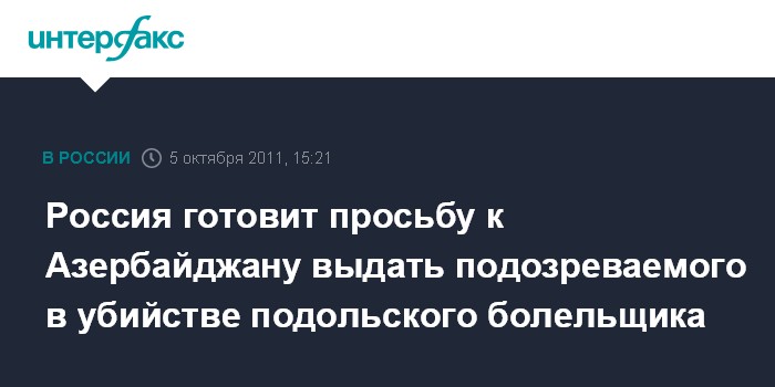 Россия готовит просьбу к Азербайджану выдать подозреваемого в убийстве подольского болельщика