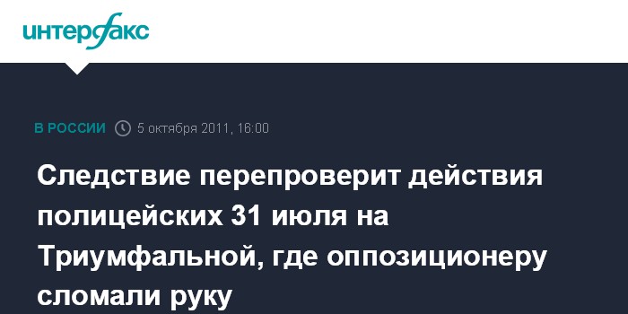 Следствие перепроверит действия полицейских 31 июля на Триумфальной, где оппозиционеру сломали руку