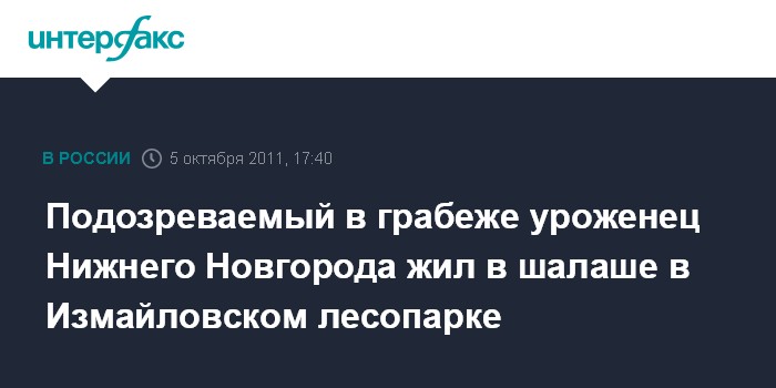 Подозреваемый в грабеже уроженец Нижнего Новгорода жил в шалаше в Измайловском лесопарке