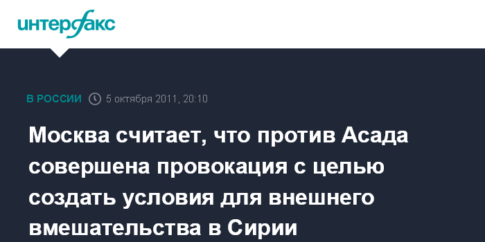 Москва считает, что против Асада совершена провокация с целью создать условия для внешнего вмешательства в Сирии