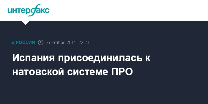 Брюссель. 5 октября. INTERFAX.RU - Испания дала согласие на участие в противоракетной обороне НАТО, в пределах страны будут размещены американские корабли оснащенные ракетами-перехватчиками, сообщил в среду на пресс-конференции в Брюсселе глава испанского правительства Хосе Луис Родригес Сапатеро.