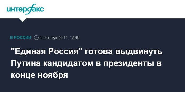 "Единая Россия" готова выдвинуть Путина кандидатом в президенты в конце ноября