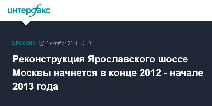 Реконструкция Ярославского шоссе Москвы начнется в конце 2012 - начале 2013 года