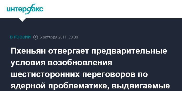 Пхеньян отвергает предварительные условия возобновления шестисторонних переговоров по ядерной проблематике, выдвигаемые Вашингтоном