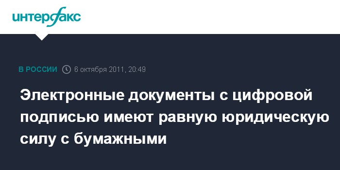 Электронные документы с цифровой подписью имеют равную юридическую силу с бумажными