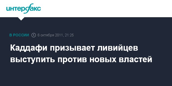 Дамаск. 6 октября. INTERFAX.RU - Очередное звуковое обращение к ливийцам отстраненного от власти ливийского лидера Муамара Каддафи вышло в четверг в эфире сирийского телеканала "Ар-Раи".