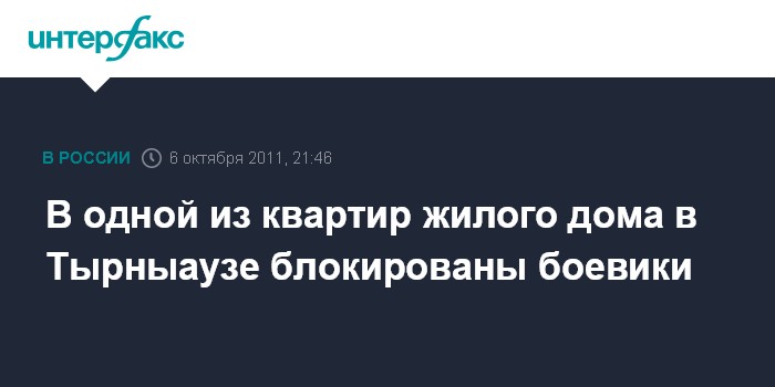 "6 октября 2011 года Оперативным штабом по КБР получена информация о возможном нахождении нескольких активных членов бандитского подполья, действующего на территории республики. В рамках правового режима КТО район был оцеплен силами спецподразделений, а преступники заблокированы в одной из квартир многоэтажного жилого дома", - сообщили "Интерфаксу" в четверг вечером в НАК.