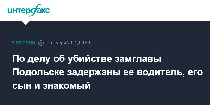 Москва. 7 октября. INTERFAX.RU - В СК РФ подтвердили факт задержания троих подозреваемых в убийстве заместителя главы администрации Подольска Веры Свиридовой, застреленной в собственном доме 26 сентября.