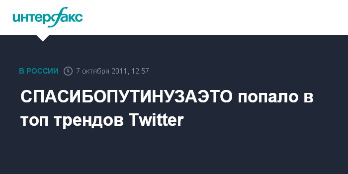 Москва. 7 октября. INTERFAX.RU – В день рождения премьер-министра РФ русскоязычные пользователи Twitter вывели в лидеры тренд-тем микроблогового сервиса хэш-тэг #СПАСИБОПУТИНУЗАЭТО.