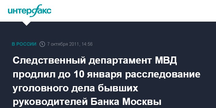 Следственный департамент МВД продлил до 10 января расследование уголовного дела бывших руководителей Банка Москвы Бородина и Акулинина