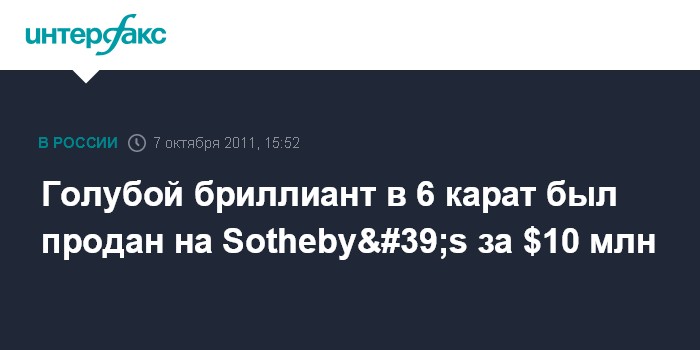 Голубой бриллиант в 6 карат был продан на Sotheby's за $10 млн