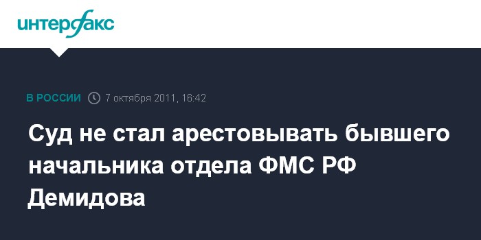 Суд не стал арестовывать бывшего начальника отдела ФМС РФ Демидова