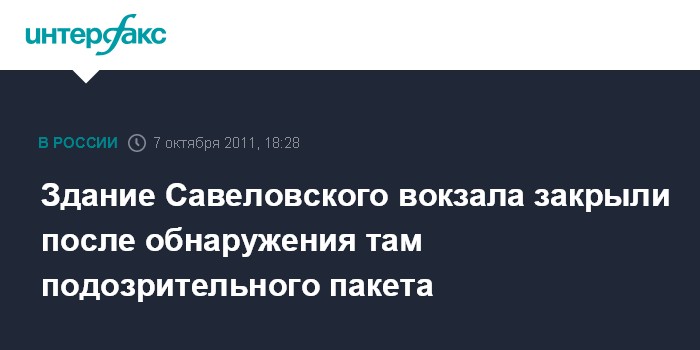 Москва.7 октября. INTERFAX.RU - Полицейские проверяют бесхозный пакет, обнаруженный на Савеловском вокзале, здание вокзала закрыто, сообщил корреспондент "Интерфакса" с места событий.