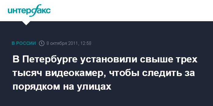 Санкт-Петербург. 8 октября. INTERFAX.RU - В людных местах Петербурга установлено свыше 3 тыс. видеокамер наружного наблюдения за порядком на улицах, сообщает пресс-служба Смольного.