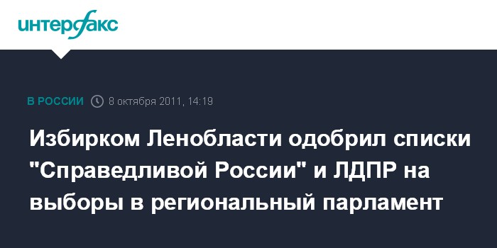 Избирком Ленобласти одобрил списки "Справедливой России" и ЛДПР на выборы в региональный парламент