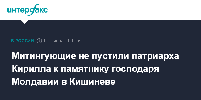 Кишинев. 9 октября. INTERFAX.RU - Протест противников Митрополии Кишинева и Всея Молдовы внес коррективы в программу визита Патриарха Московского и Всей Руси Кирилла в столицу республики.