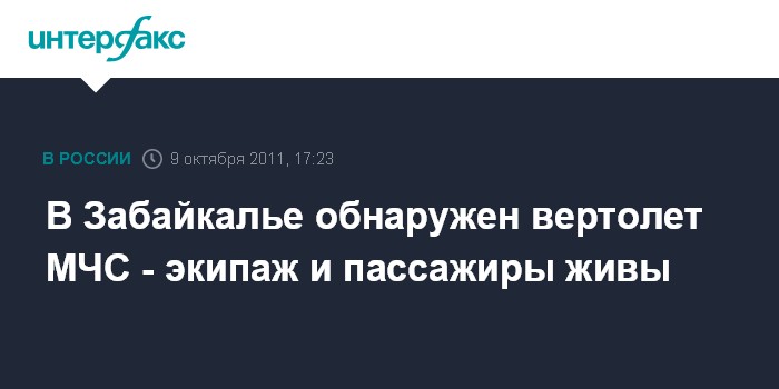 В Забайкалье обнаружен вертолет МЧС - экипаж и пассажиры живы