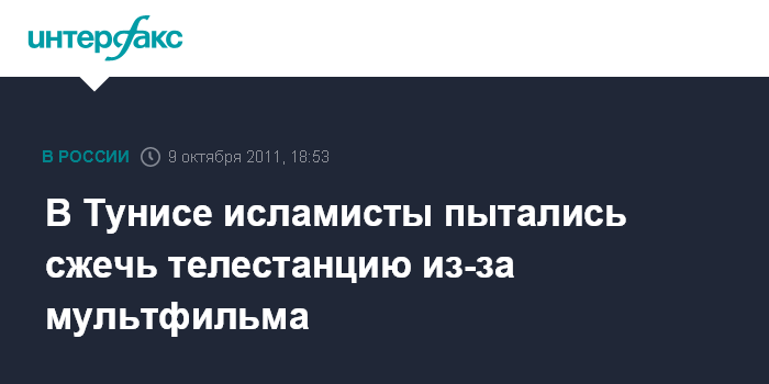Лондон. 9 октября. INTERFAX.RU - Тунисские исламисты посчитали, что некоторые кадры из мультфильма "Персиполис" являются богохульством и попытались поджечь здание телестанции Nessma, показавшей картину.