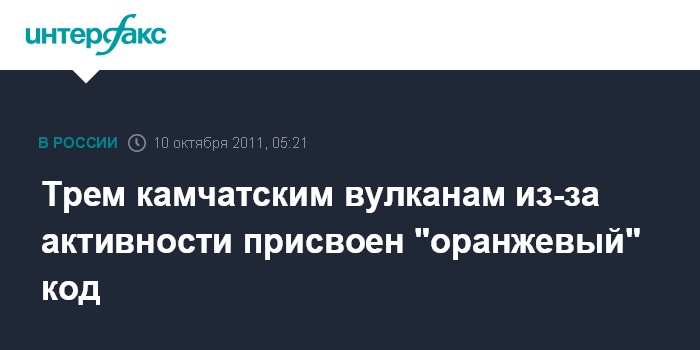 Владивосток. 10 октября. ИНТЕРФАКС-ДАЛЬНИЙ ВОСТОК - Три извергающихся вулкана на Камчатке в настоящее время представляют опасность как для туристов, так и для авиации, им присвоен "оранжевый", предпоследний по опасности, код.