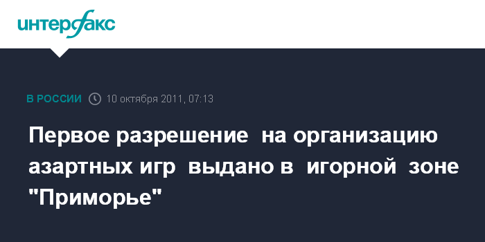 Первое разрешение на организацию азартных игр выдано в игорной зоне "Приморье"