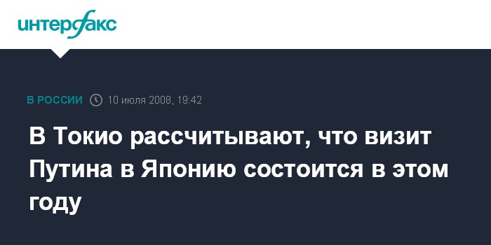 Москва. 10 июля. ИНТЕРФАКС - В Токио ожидают, что в второй половине нынешнего года состоятся визиты в Японию премьера РФ Владимира Путина, вице-премьера Сергея Иванова, главы МИД Сергея Лаврова и министра промышленности и торговли Виктора Христенко.