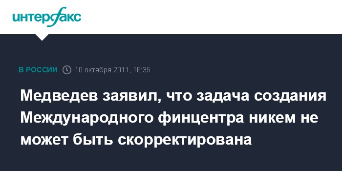Медведев заявил, что задача создания Международного финцентра никем не может быть скорректирована