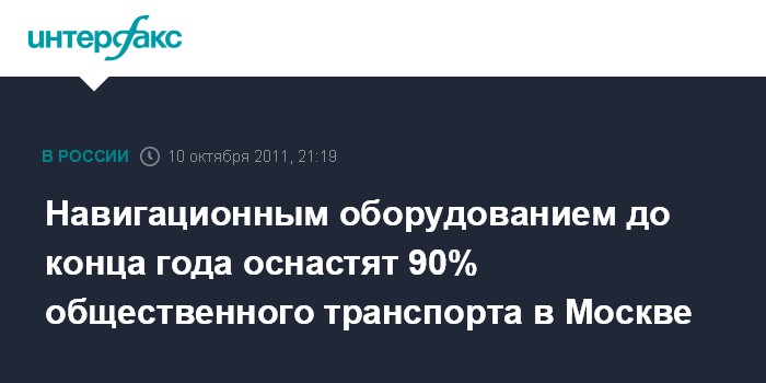 Москва. 10 октября. INTERFAX.RU - ОАО "Навигационно-информационные системы" ("НИС ГЛОНАСС") планирует до конца текущего года оснастить навигационным оборудованием около 90% московского общественного транспорта - приблизительно 7800 автобусов, троллейбусов и трамваев, сообщил гендиректор компании Александр Гурко на встрече с журналистами.
