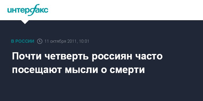 Москва. 11 октября. INTERFAX.RU - Согласно исследованию социологов, около четверти россиян (23%) часто думают о смерти.