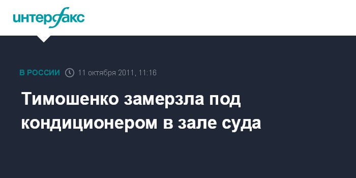Киев. 11 октября. INTERFAX.RU - Экс-премьер Украины, лидер партии "Батькивщина" Юлия Тимошенко, ее супруг Александр Тимошенко и дочь Евгения Карр замерзли в зале Печерского районного суда Киева из-за кондиционеров.