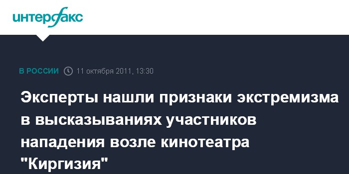 Москва. 11 октября. INTERFAX.RU - Лингвистическая экспертиза признала экстремистскими высказывания злоумышленников, напавших на двух девушек и сотрудников полиции около кинотеатра "Киргизия" в Москве, сообщил "Интерфаксу" источник в правоохранительных органах.