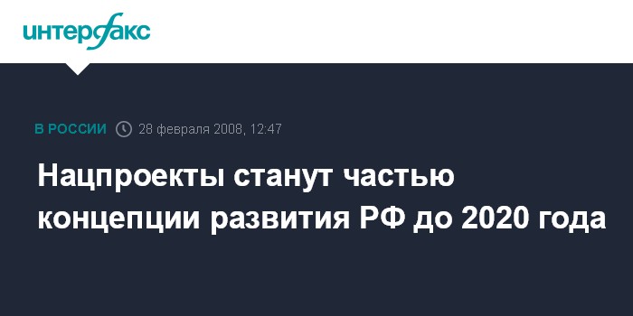 Выступая на заседании президентского Совета по реализации приоритетных нацпроектов и демографической политике, глава государства сказал: "Сегодня можно с полным основанием утверждать, что цели, выбранные нами два года назад, - правильные. И впредь они должны стать для нас долгосрочными национальными приоритетами, фактически неотъемлемой частью концепции развития России до 2020 года, которую сейчас дорабатывает правительство в практическом ее измерении".