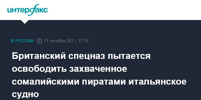 Рим. 11 октября. INTERFAX.RU - Бойцы британского спецназа проводят во вторник операцию по освобождению 23 членов экипажа итальянского судна Montecristo, удерживаемого сомалийскими пиратами, сообщают римские СМИ.