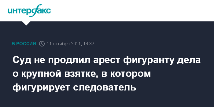 Суд не продлил арест фигуранту дела о крупной взятке, в котором фигурирует следователь