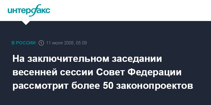 На заключительном заседании весенней сессии Совет Федерации рассмотрит более 50 законопроектов