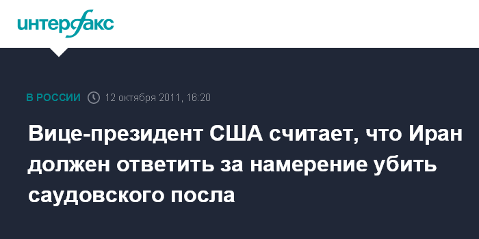 Вашингтон. 12 октября. INTERFAX.RU - Иран должен будет ответить за заговор с целью убийства посла Саудовской Аравии в Вашингтоне, заявил вице-президент США Джозеф Байден.