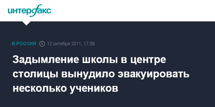 Москва. 12 октября. INTERFAX.RU - Несколько учеников и сотрудников школы в центре Москвы эвакуированы в среду днем из-за небольшого задымления, сообщил "Интерфаксу" источник в правоохранительных органах.