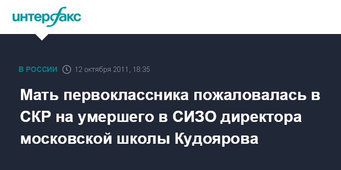 Москва. 12 октября. INTERFAX.RU - Следственные органы получили еще одну жалобу от родителей учащейся школы N1308 на ее директора Андрея Кудоярова, который в минувшую субботу скончался в одном из московских СИЗО.