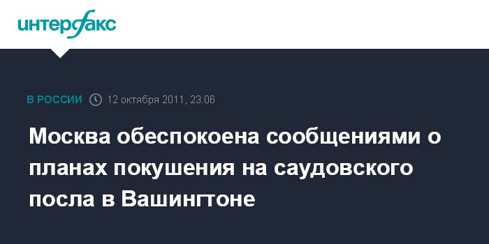Москва обеспокоена сообщениями о планах покушения на саудовского посла в Вашингтоне