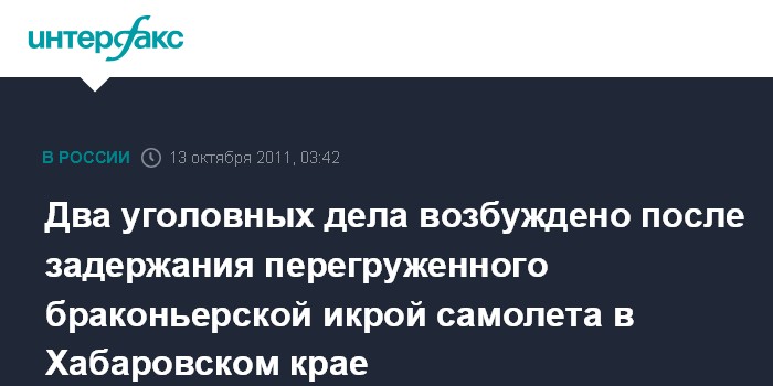 Владивосток. 13 октября. ИНТЕРФАКС-ДАЛЬНИЙ ВОСТОК - Транспортная прокуратура и следственные органы продолжают проверки по факту выявления в аэропорту Николаевска-на-Амуре (Хабаровский край) пассажирского Ан-24, который прибыл в аэропорт перегруженным - на его борту нелегально находилось 860 кг "красной" икры и лосося.