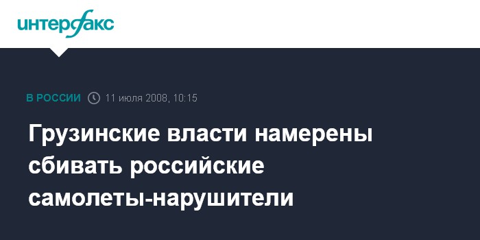 Москва. 11 июля. INTERFAX.RU - В Тбилиси обещают сбивать российские военные самолеты, если они нарушат воздушное пространство Грузии. "Если российские военные самолеты вновь нарушат воздушное пространство Грузии, то будут собирать их осколки", - заявил журналистам заместитель председателя парламентского комитета по обороне и национальной безопасности Ника Руруа.
